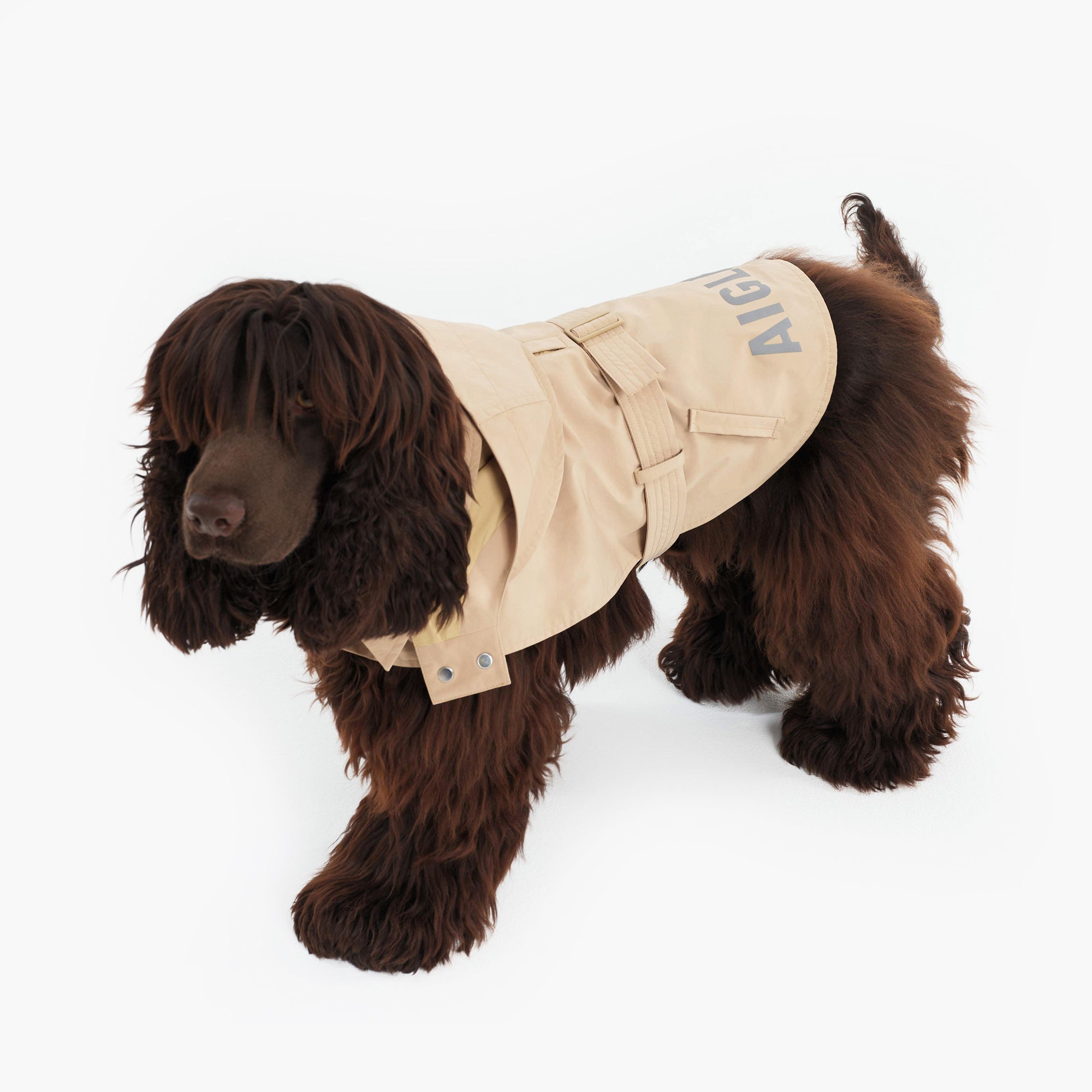 The iconic Aigle trench coat is now available for Pets.  Made using the same high quality materials as the adultwear trench coat, this coat is waterproof, comfortable, and stylish.  It features a removable hood and leash holes, carefully designed for rainy walks full of style