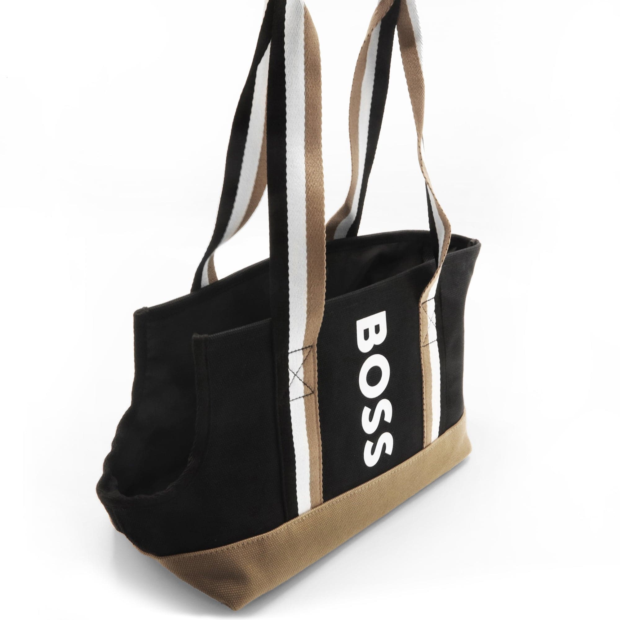 Carry your pet in style - wherever you go. This stylish tote bag has an embroidered BOSS logo base pad for comfort, style and convenience and a built in leash clip for additional security